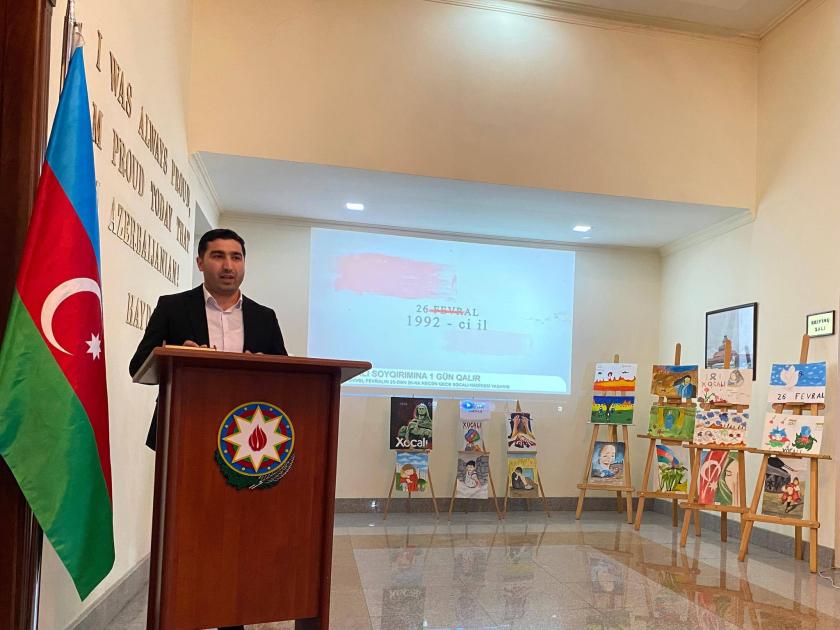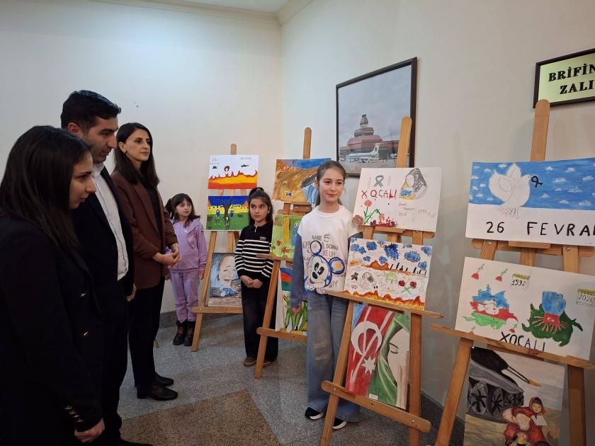 Tədbir çərçivəsində “Xocalı: uşaqların gözü ilə” adlı sərgi təşkil olunub. Sərgidə şagirdlərin hazırladıqları rəsm və əl işləri nümayiş etdirilib. Təqdim olunan əsərlərdə Xocalı soyqırımı qurbanlarının ağrısı və sülhə çağırış motivləri öz əksini tapıb.
