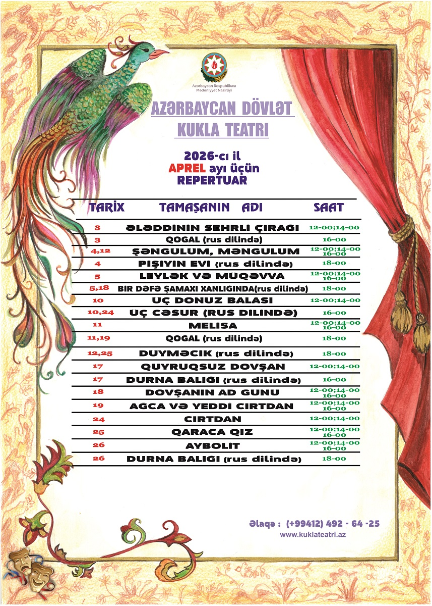 Azərbaycan Dövlət Kukla Teatrı aprel ayında maraqlı və rəngarəng səhnə əsərləri ilə çıxış edəcək.