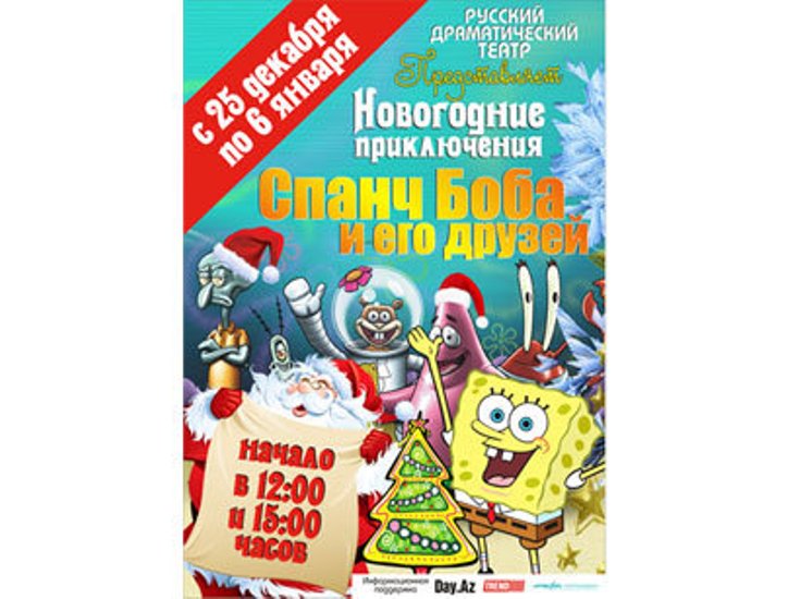 Dekabrın 25-dən yanvarın 6-dək S.Vurğun adına Azərbaycan Dövlət Rus Dram Teatrında “Spanç Bob və dostlarının yeni il sərgüzəştləri” tamaşası göstəriləcək. Səhnə əsərinin quruluşçu rejissoru xalq artisti Aleksandr Şarovski, musiqi tərtibatı əməkdar mədəniyyət işçisi Vladimir Neverov, ssenari müəllifi Teymur Rəhimovdur. Tamaşaçıları Spanç Bob və onun dostları, həmçinin Şaxta baba və Qar qızla maraqlı görüş gözləyir. Biletlər teatrın kassalarında satılır.