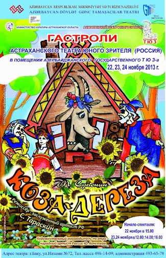 24.11.2013. Həştərxan Dövlət Gənc Tamaşaçılar Teatrı Bakıda M.Suponinin “Koza Dereza” tamaşasını nümayiş etdirib. Azərbaycan Dövlət Gənc Tamaşaçılar Teatrının səhnəsində göstərilən tamaşanın rejissoru Rusiya Federasiyasının əməkdar artisti Sergey Taraskindir. Həştərxan Dövlət Gənc Tamaşaçılar Teatrı qastrol səfərinin sonuncu günü - noyabrın 24-də bu tamaşanı bir daha göstərəcək.